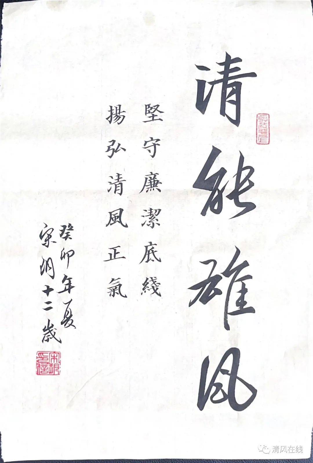 ? ? ?以“清能懿行,清風潤心”為主題,組織創作了一批接地氣、冒熱氣、有生氣的廉潔文化作品,將廉潔文化轉為看得見摸得著的日常生活元素,讓清廉之風吹進心田。